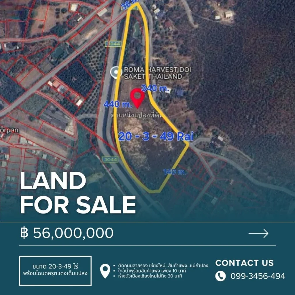 ที่ดินแปลงใหญ่ อ.ดอยสะเก็ด จ.เชียงใหม่ ขนาด 20-3-49 ไร่ พร้อม โฉนดครุฑแดงเต็มแปลง