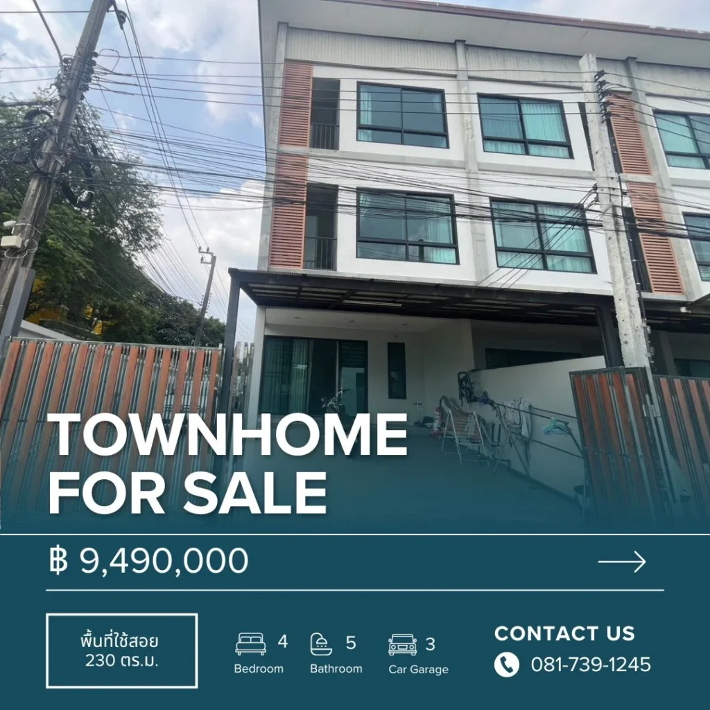 ขายทาวน์โฮม ซอยปุณวิถี บางจาก พระโขนง กรุงเทพฯ พื้นที่ใช้สอย 230 ตร.ม. 4 ห้องนอน ใกล้ BTS ราคา 9,490,000 บาท
